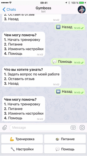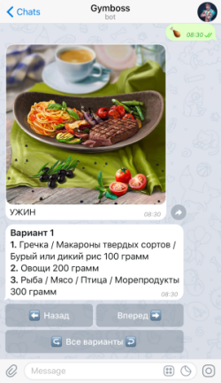 Готовы к тренировке? Просто откройте чат со мной в Telegram, Viber или ВКонтакте. Я расскажу, какие упражнения нужно сделать, подскажу вес, число повторов и подходов!